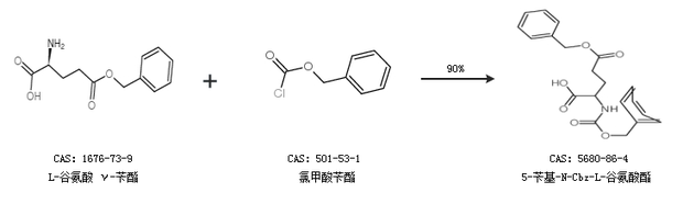 1.通过L-谷氨酸 γ-苄酯和氯甲酸苄酯合成5-苄基-N-Cbz-L-谷氨酸酯,收率约90%;
