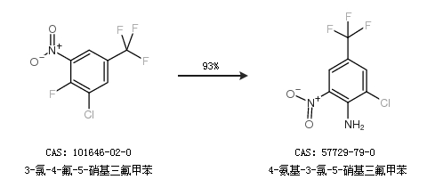 1.通过3-氯-4-氟-5-硝基三氟甲苯合成4-氨基-3-氯-5-硝基三氟甲苯,收率约93%;