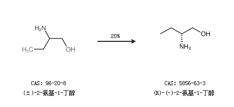 1.通过(±)-2-氨基-1-丁醇合成(R)-(-)-2-氨基-1-丁醇,收率约20%;