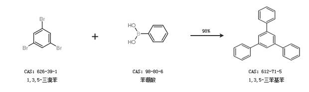 1.通过1,3,5-三溴苯和苯硼酸合成1,3,5-三苯基苯,收率约98%;