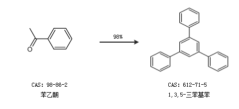 2.通过苯乙酮合成1,3,5-三苯基苯,收率约98%;