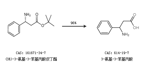 1.通过(3R)-3-氨基-3-苯基丙酸叔丁酯合成3-氨基-3-苯基丙酸,收率约96%;