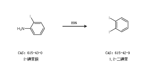 1.通过2-碘苯胺合成1,2-二碘苯,收率约89%;
