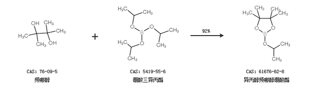 1.通过频哪醇和硼酸三异丙酯合成异丙醇频哪醇硼酸酯,收率约92%;