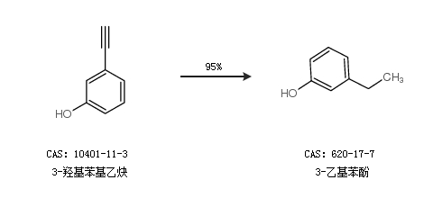 1.通过3-羟基苯基乙炔合成3-乙基苯酚,收率约95%;