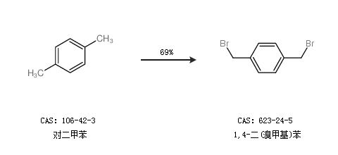 2.通过对二甲苯合成1,4-二(溴甲基)苯,收率约69%;
