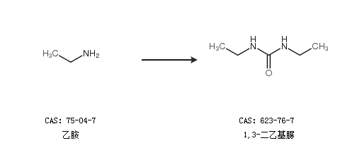 1.通过乙胺合成1,3-二乙基脲,收率约97%;