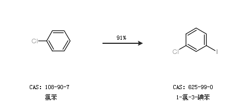2.通过氯苯合成1-氯-3-碘苯,收率约91%;