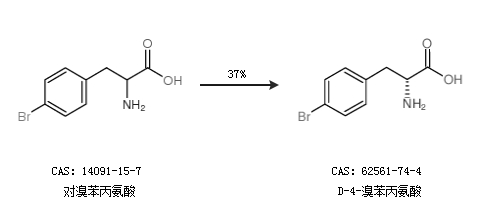 1.通过对溴苯丙氨酸合成D-4-溴苯丙氨酸,收率约37%;