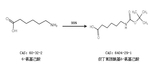 1.通过6-氨基己酸合成叔丁氧羰酰基6-氨基己酸,收率约99%;