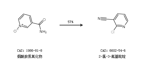 2.通过烟酰胺氮氧化物合成2-氯-3-氰基吡啶,收率约57%;