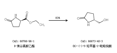 2.通过D-焦谷氨酸乙酯合成(R)-(-)-5-羟甲基-2-吡咯烷酮,收率约83%;