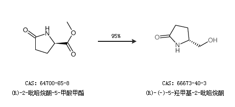 1.通过(R)-2-吡咯烷酮-5-甲酸甲酯合成(R)-(-)-5-羟甲基-2-吡咯烷酮,收率约95%;
