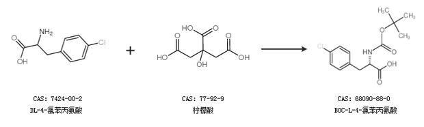 2.通过DL-4-氯苯丙氨酸和柠檬酸合成BOC-L-4-氯苯丙氨酸