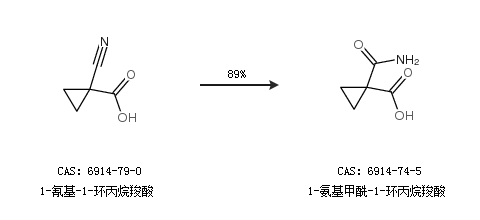 1.通过1-氰基-1-环丙烷羧酸合成1-氨基甲酰-1-环丙烷羧酸,收率约89%;