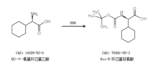 1.通过(R)-α-氨基环己基乙酸合成Boc-D-环己基甘氨酸,收率约89%;