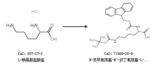 中文名称 	N-芴甲氧羰基-N''-叔丁氧羰基-L-赖氨酸