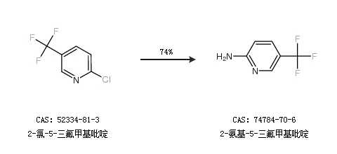 2.通过2-氯-5-三氟甲基吡啶合成2-氨基-5-三氟甲基吡啶,收率约74%;