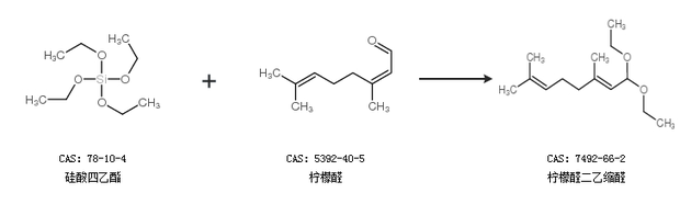 中文别名 1,1-二乙氧基-3,7-二甲基-2,6-辛二烯;柠檬二乙缩醛;