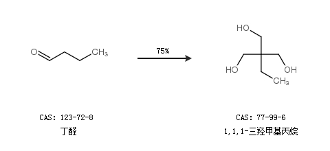 2.通过丁醛合成1,1,1-三羟甲基丙烷,收率约75%;