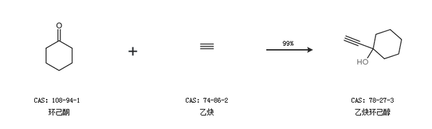 2.通过环己酮和乙炔合成乙炔环己醇,收率约99%;