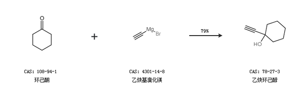 1.通过环己酮和乙炔基溴化镁合成乙炔环己醇,收率约79%;