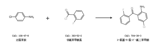 1.通过对氯苯胺和邻氟苯甲酰氯合成2-氨基-5-氯-2''-氟二苯甲酮