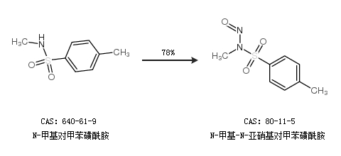 中文别名 N-甲基-N-亚硝基-P-甲苯磺酰胺;对甲苯磺酰甲基亚硝胺;N-甲基-N-亚硝基对甲苯磺酰;N-甲基-N-亚硝基-4-甲苯磺酰胺;