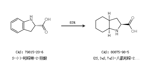 2.通过S-(-)-吲哚啉-2-羧酸合成(2S,3aS,7aS)-八氢吲哚-2-羧酸,收率约83%;