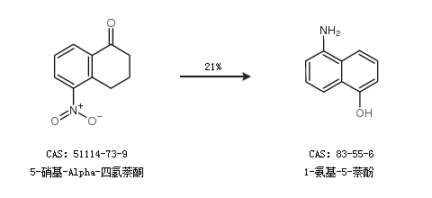 2.通过5-硝基-Alpha-四氢萘酮合成1-氨基-5-萘酚,收率约21%;