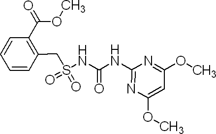 2-{〔(4,6-二甲氧基嘧啶-2-基)氨基碳基〕氨基磺基甲基}苯甲酸甲酯,N-(4,6-二甲氧基嘧啶-2-基)邻甲酸甲酯苄基磺酰脲,农得时,苄嘧磺隆,3-(4,6-二甲氧基嘧啶-2-基)-1-(2-甲氧基甲酰基苄基)磺酰脲