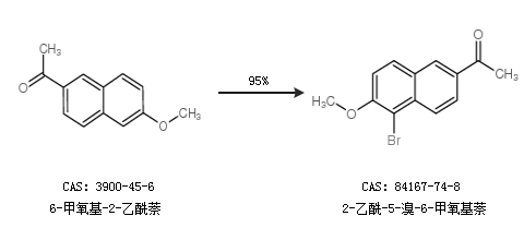 1.通过6-甲氧基-2-乙酰萘合成2-乙酰-5-溴-6-甲氧基萘,收率约95%;