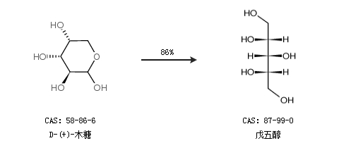 1.通过D-(+)-木糖合成戊五醇,收率约86%;