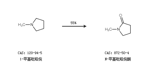 1.通过1-甲基吡咯烷合成N-甲基吡咯烷酮,收率约55%;