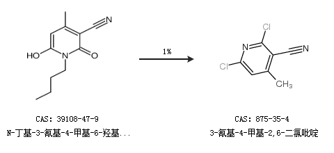 中文别名 2,6-二氯-3-氰基-4-甲基吡啶;2,6-二氯-4-甲基-3-吡啶氰;2,6-二氯-4-甲基烟碱甲腈;3-氰基-2,6-二氯-4-甲基吡啶;2,6-二氯-4-甲基烟腈;2,6-二氯-4-甲基尼克腈;