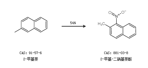 2.通过2-甲基萘合成2-甲基-二硝基萘酚,收率约54%;