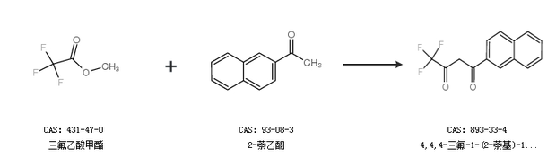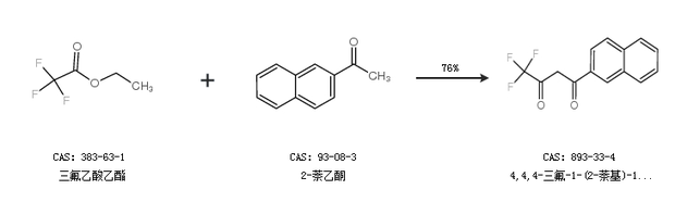 1.通过三氟乙酸乙酯和2-萘乙酮合成4,4,4-三氟-1-(2-萘基)-1,3-丁二酮,收率约76%;