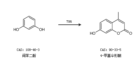 1.通过间苯二酚合成4-甲基伞形酮,收率约79%;