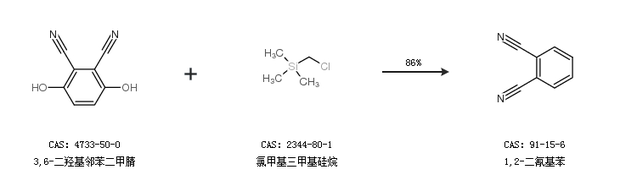 2.通过3,6-二羟基邻苯二甲腈和氯甲基三甲基硅烷合成1,2-二氰基苯,收率约86%;