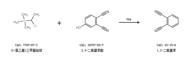 1.通过(1-氯乙基)三甲基硅烷和3,4-二氰基苯酚合成1,2-二氰基苯,收率约75%;
