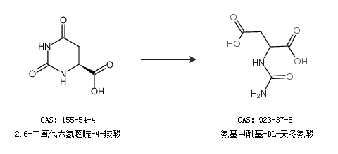 1.通过2,6-二氧代六氢嘧啶-4-羧酸合成氨基甲酰基-DL-天冬氨酸