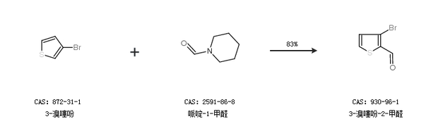 1.通过3-溴噻吩和哌啶-1-甲醛合成3-溴噻吩-2-甲醛,收率约83%;