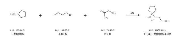 2.通过1-甲基吡咯烷、正溴丁烷和2-丁酮合成1-丁基-1-甲基吡咯烷溴化物,收率约87%;