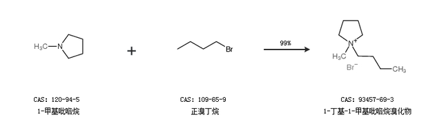 1.通过1-甲基吡咯烷和正溴丁烷合成1-丁基-1-甲基吡咯烷溴化物,收率约99%;