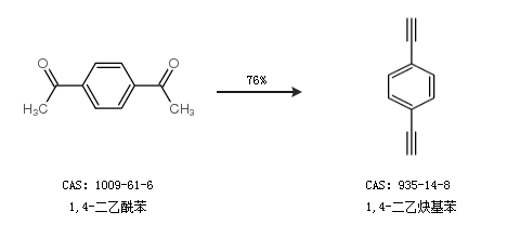 2.通过1,4-二乙酰苯合成1,4-二乙炔基苯,收率约76%;