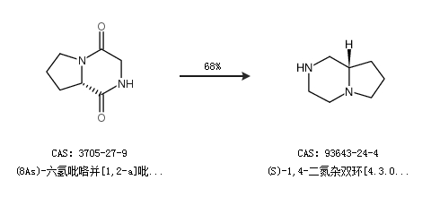 1.通过(8As)-六氢吡咯并[1,2-a]吡嗪-1,4-二酮合成(S)-1,4-二氮杂双环[4.3.0]壬烷,收率约68%;
