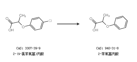 1.通过2-(4-氯苯氧基)丙酸合成2-苯氧基丙酸