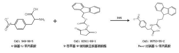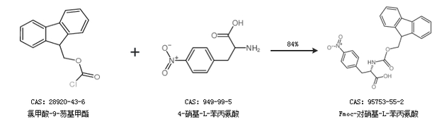 1.通过氯甲酸-9-芴基甲酯和4-硝基-L-苯丙氨酸合成Fmoc-对硝基-L-苯丙氨酸,收率约84%;