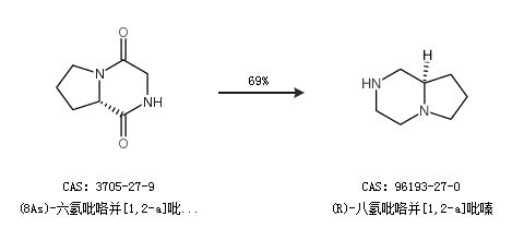 1.通过(8As)-六氢吡咯并[1,2-a]吡嗪-1,4-二酮合成(R)-八氢吡咯并[1,2-a]吡嗪,收率约69%;