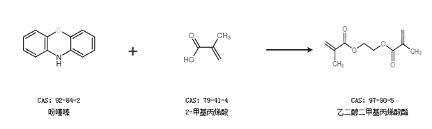 2.通过吩噻嗪和2-甲基丙烯酸合成乙二醇二甲基丙烯酸酯